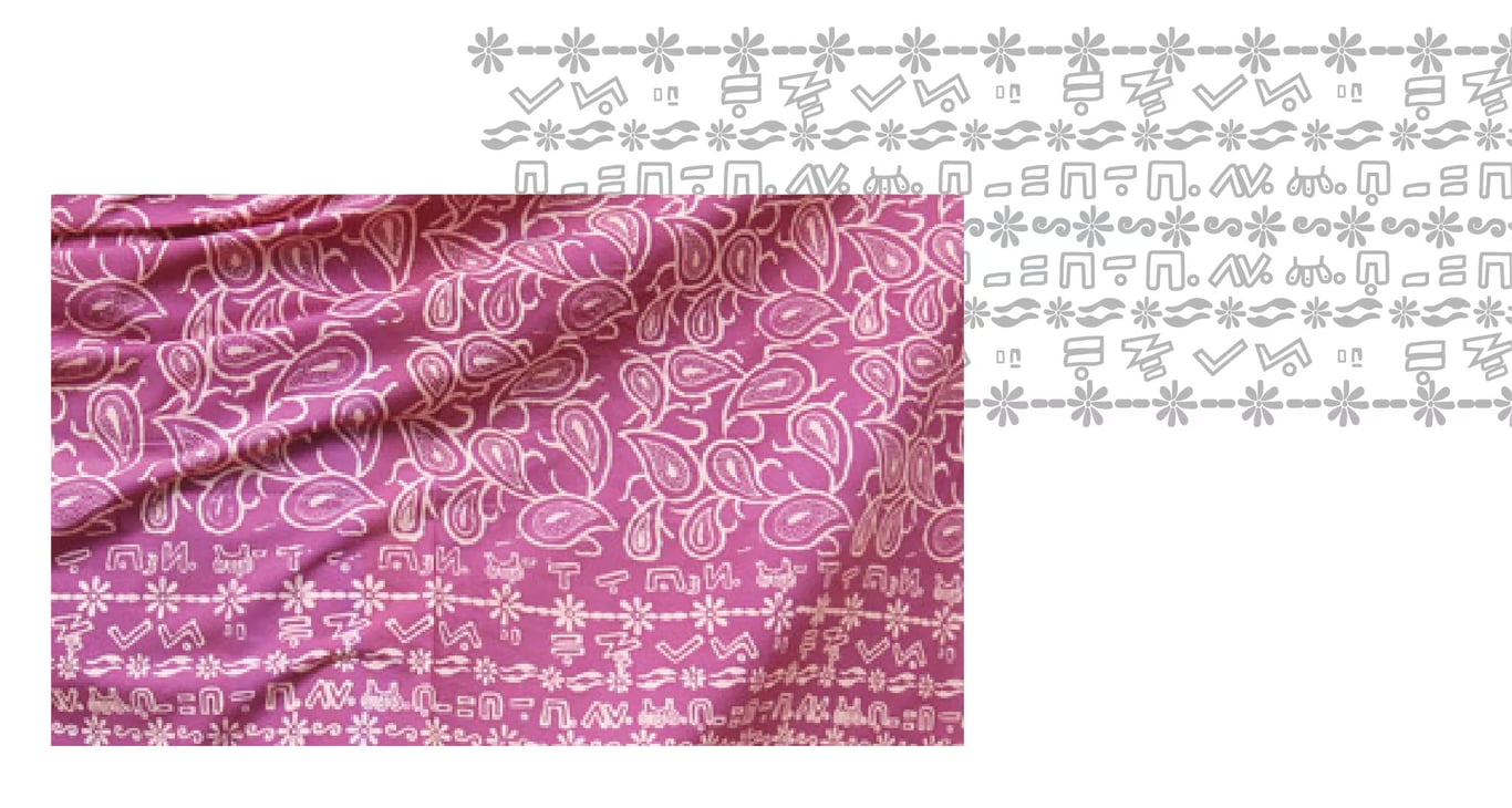 Batik Incung uses elements from the Incung script, an ancient written language found exclusively in central Sumatra. This centuries-old script can still be found inscribed on buffalo horn, bamboo, bark, and palm leaves preserved as heirlooms by the community. The colors used in this type of batik tend to be dark in color, typically deep reds and blacks.